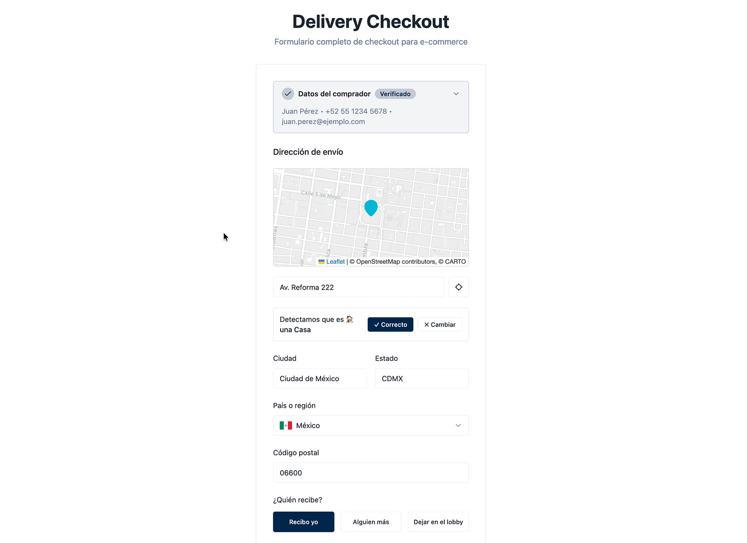 Qué implementar: autocompletado de direcciones (Places API), normalización de formato y validación postal en tiempo real.